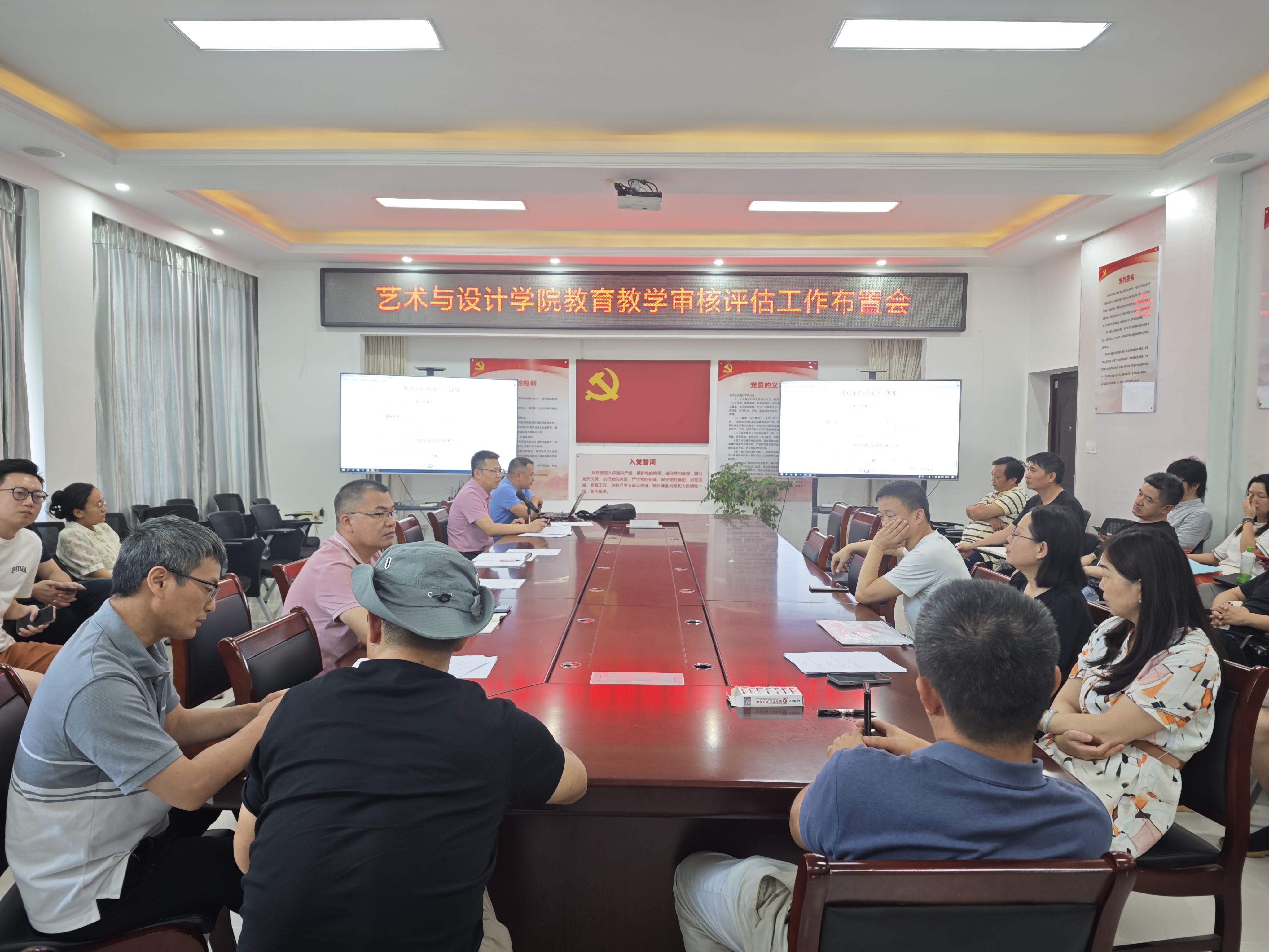 根据学校2024年各学院本科教育教学审核评估工作提示,为迎接2024年本科教育教学审核评估, 7 月 4 日,艺术与设计学院在H309召开工作布置会。学院党委书记董利飞、副院长(主持工作)宋军、班子成员高昱及全体教职员工参加了此次会议。会议由宋军主持。